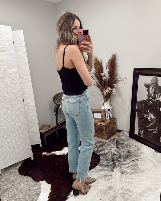 Sold outClean Raw Hem Straight Jean